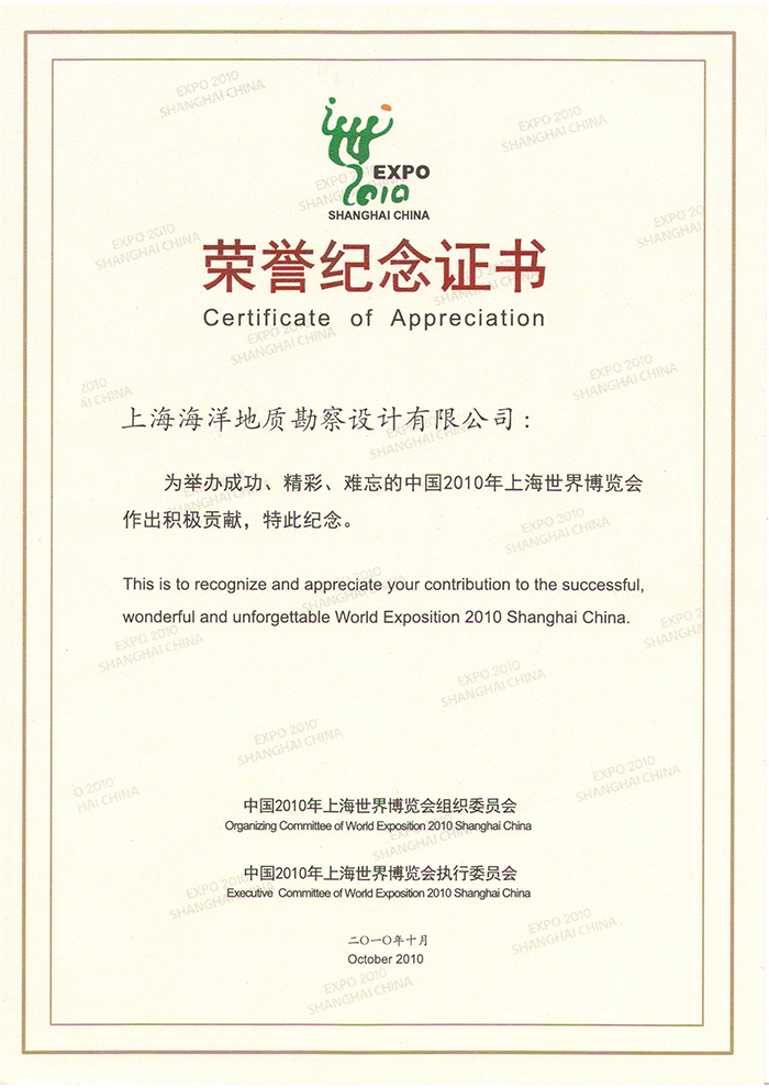 榮獲中國2010年上海世界博覽會榮譽(yù)紀(jì)念證書