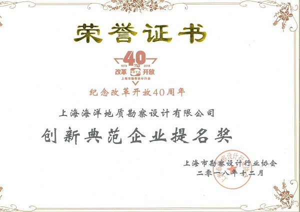 榮獲改革開放40周年創(chuàng)新典范企業(yè)提名獎